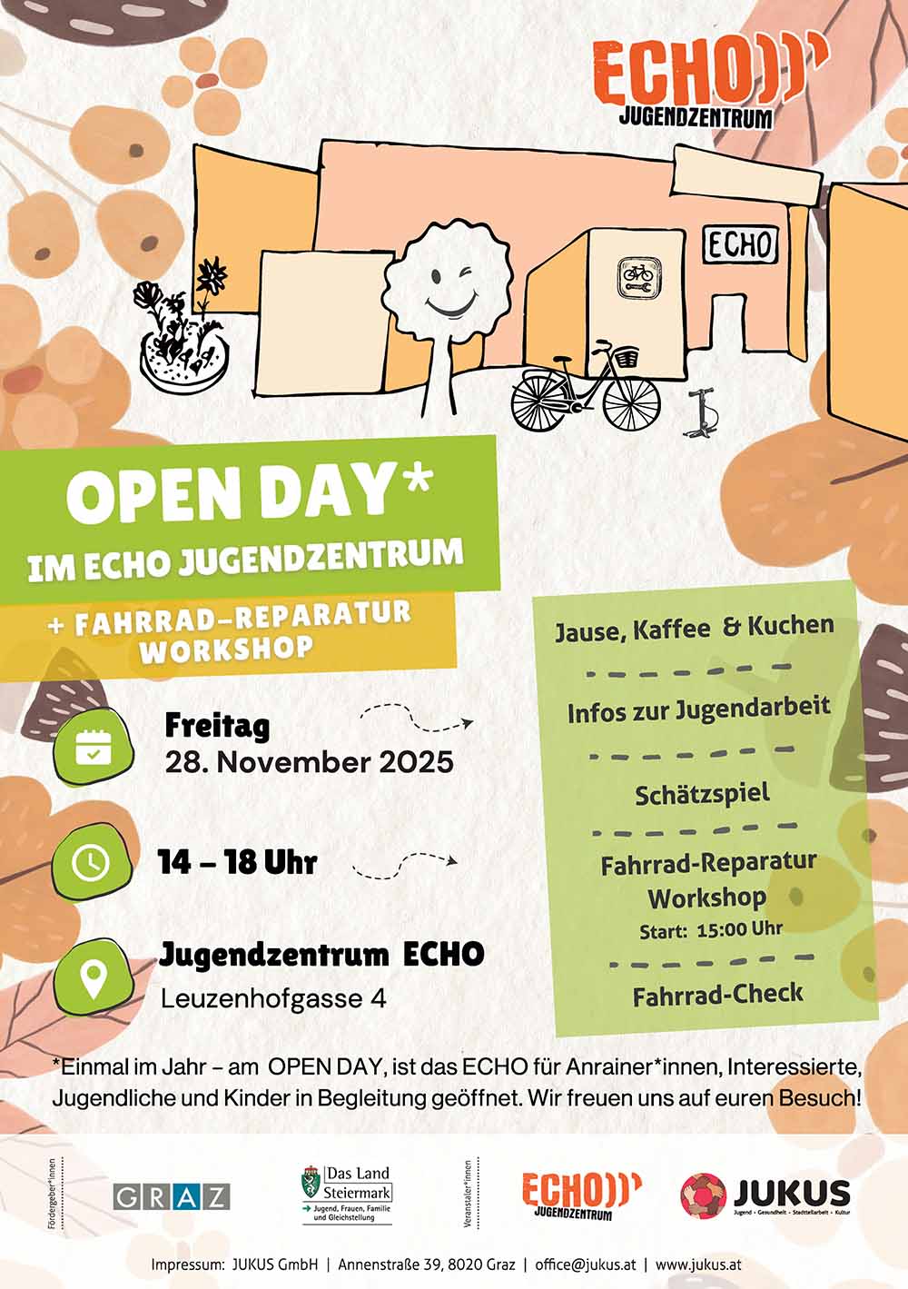 Das Jugendzentrum ECHO ist ein Ort für aktive Freizeitgestaltung, hier gibt es Möglichkeiten zum Freund*innen Treffen, Spiel- und Sportangebote, gemeinsam Handwerken, themenspezifische Workshops, die eigene Identität entwickeln, Feste feiern, zusammen Kochen und vieles mehr.